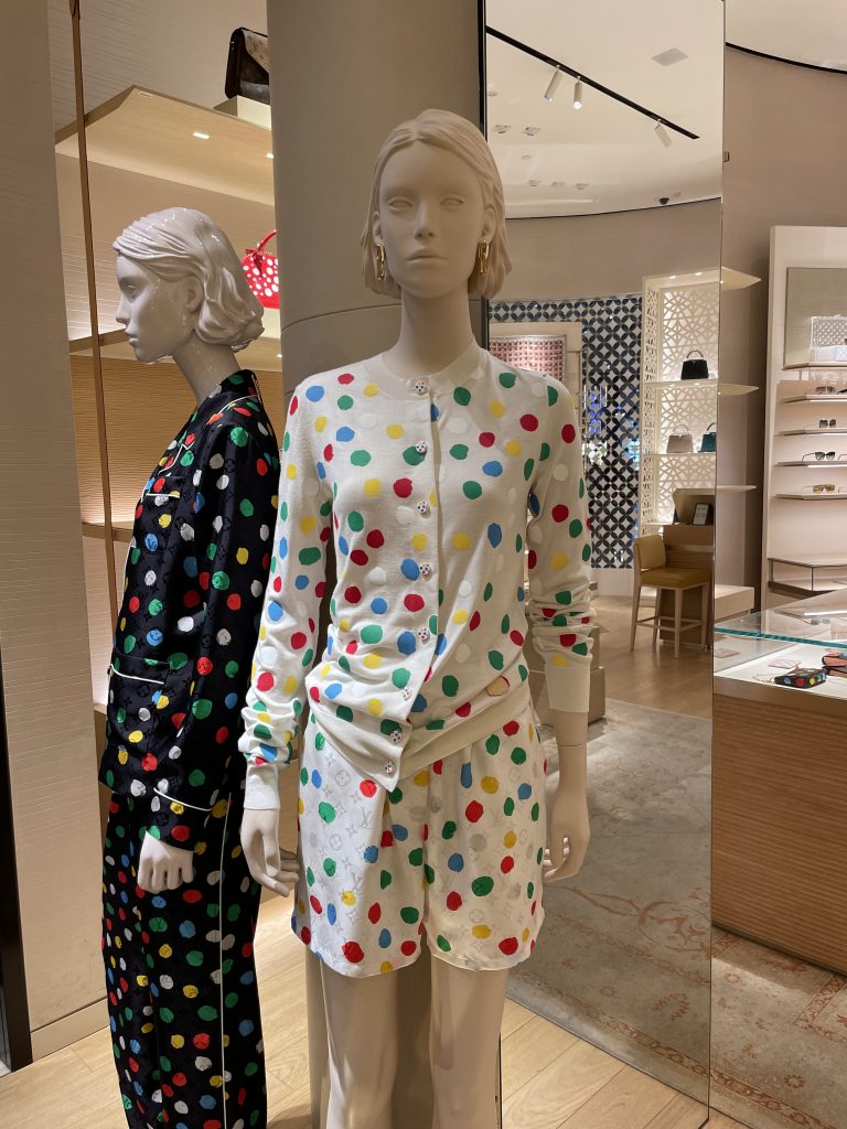In Istanbul am Flughafen wird man erstmal mit den Worten „Willkommen in der Stadt der Welt“ begrüsst. Im Transitbereich hat mich erstmal die Vielzahl an Läden überrascht. Louis Vuitton, Celine, Dior, Gucci, Fendi, Prada, Saint Laurent, Hermes und so fort. Während Saint Laurent auf kühlen Marmor als Ladenausstattung setzt, ist bei Prade ein grelles Lindgrün dominant, Gucci lädt zum Afternoon Tea ein mit retro Schuhen und Haartuch ein „Très chic“ und am interessantesten, aus meiner Sicht, die neue Collection von Louis Vuitton. Bekannt für das braune Muster, ist Louis Vuitton eine Kooperation mit der japanischen Künstlerin Yayoi Kusama eingegangen. Ja und die, hat einfach lauter bunte Farbkleckser auf alles drauf gemacht. Schon toll, wenn man es als Künstlerin schafft, Farbkleckser als Erkennungszeichen für sich zu beanspruchen!