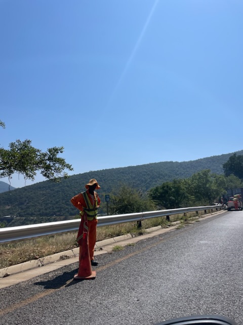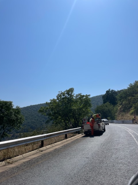 Wir fuhren auf unserem Weg zurück nach Jo‘burg durch ganz andere aber nicht minderschöne Landschaften. Zuerst hat sich aber einer der Elefanten noch von uns verabschiedet und ich durfte auf der Schotterstrasse auf dem Fenster sitzen und nochmal den Fahrtwind geniessen. Dann kamen menschenleere Strassen, Strassenarbeiter und Landschaften, die endlos wirkten. Die Gegend um die Ortschaft Dullstroom ist definitiv eine Gegend, welche ich mir sehr gerne anschauen würde, sollte ich den Weg zurück nach Südafrika finden.
