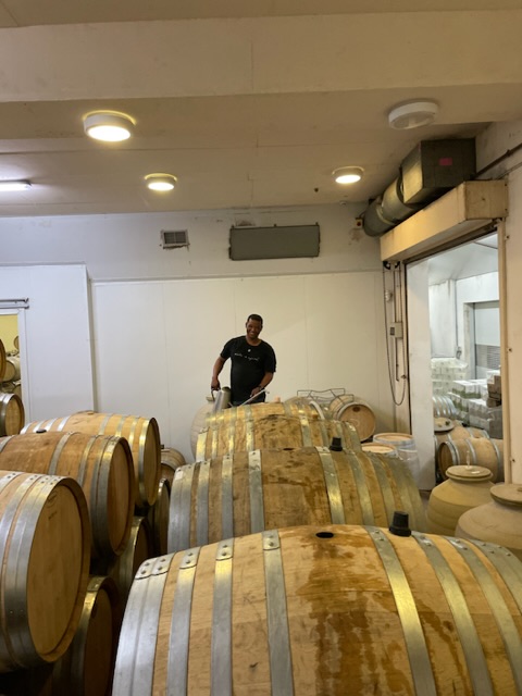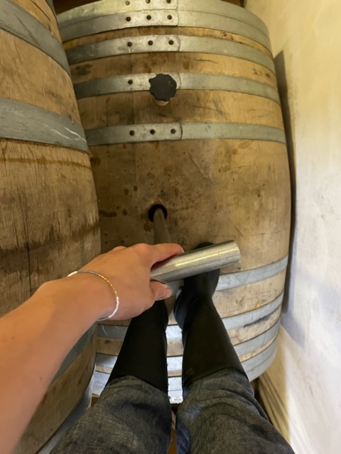 So nett und wortgewandt der Weisswein in den Holzfässern sich unterhalten hat – vielleicht erinnert ihr euch an das Video vom plaudernden Weisswein? – so stumm war es heute, als ich mit André in den Keller kam. Ausgeplaudert waren die Weine und sie hatten Auffüllbedarf. Also haben wir ausreichend Wein aus dem Stahltank heruntergebracht und jedes einzelne Holzfass erst kräftig umgerührt, aufgefüllt und wieder zugestöpselt. Jetzt dürfen die Weissweine allerdings nicht mehr plaudern, jetzt ist aus mit lustig tralalalalaaaa. Jetzt dürfen sie noch liegen und sich entwickeln, am besten im Winterschlafmodus bei herruntergekühlten 16 Grad Celsius.