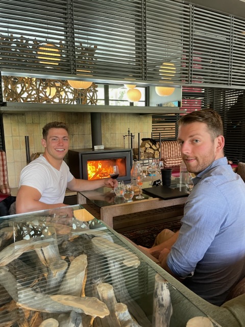 Danach haben wir uns leckere Egg Benedicts gegönnt und waren froh, dass Ellen und Max auch noch etwas Hunger mitgebracht haben. Gestärkt vom Frühstück sind wir gleich nach neben an in den Tasting Room. Wir haben doch tatsächlich den schönsten Platz direkt gegenüber vom Kamin erhalten.