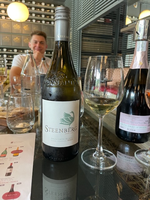 Das Weingut Klein Constantia ist Nr. 2 auf unserer Erkundungstour und ich Trottelchen hab mir natürlich noch in letzter Minute auf den letzten Tropfen Steenberg Catharina auf meinen schönen orangen Leinen-Hosenanzug geschüttet 🙁 Ja so spielt das Leben. Bekannt ist das Weingut Klein Constantia vorallem für seinen Süsswein. Den haben angeblich bereits Napoleon, Marie Antoinette und George Washington getrunken und natürlich viele andere. Er schmeckt auch wirklich vorzüglich, aber 85 Euro die Flasche ist eventuell doch etwas teuer. Was meint ihr?