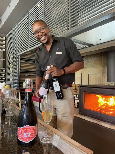 Max und Ellen sind aus Franschhoek angereist und gemeinsam wollen wir die Weinlandschaft Constantia erkunden. Mit Stefan und Martin sitze ich bereits beim leckeren Frühstück im Bistro sixteen82 des Weinguts Steenberg. Gleich zu Beginn werden wir mit einem Gruss aus der Küche verwöhnt: Brioche mit geschmolzener Zuckerbutter! Mmmmmjami.