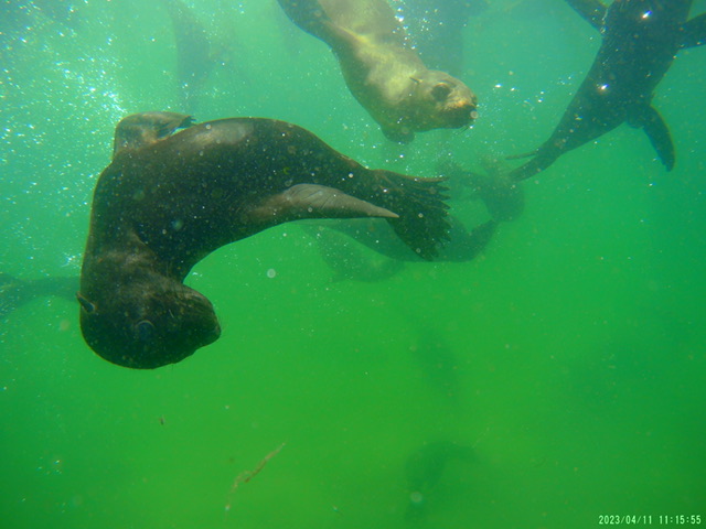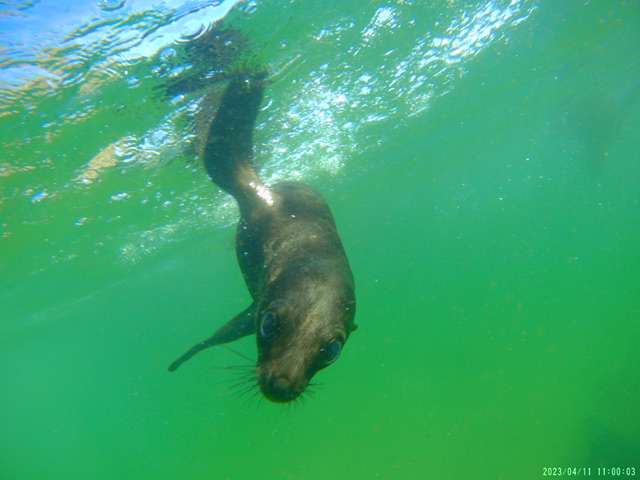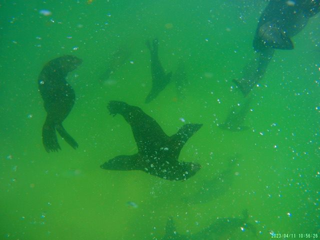 Oh das hatte ich mir gewünscht, von dem Moment an, wo ich Kevins Bilder gesehen hatte, wie er mit Robben geschwommen ist. Unglaublich und unbeschreiblich was für niedliche, neugierige und putzige Tiere Robben doch sind. Und ein weiteres Mal wünschte ich mir ganz ohne Luft unter Wasser schwimmen zu können um mich mit Ihnen um meine eigene Achse zu drehen und in den Wellen zu wiegen. Mit Taucherbrille, Schnorchel und vor allem Neoprenanzug wars dann aber doch besser. Also wer in seinem Leben mal die Möglichkeit hat, mit diesen wilden aber dennoch zutraulichen Tieren zu schwimmen dem rate ich nur: ergreife die Chance! Ich habe danach am ganzen Leib gezittert und geschlottert vor Kälte aber kaum hatte ich meinen Tee getrunken und war von der Sonne wieder gewärmt, wollte ich sofort ein zweites Mal mit rausfahren. Hab ich nicht gemacht aber das ist definitiv etwas was ich mir nochmal wieder gönnen werde, sollte ich die Möglichkeit bekommen.