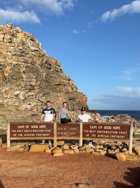Auf dem Weg zum Kap ist links und rechts Heideland oder wie hier dazu gesagt wird Fynbos. Am Ende der Strasse angekommen sind wir dann erstmal zum sĂŒd-westlichsten Punkt gewandert und es musste natĂŒrlich die 1,5h Angabe auf dem Schild unterboten werden. Martin hat den Stefan und mich also bis ganz nach vorne ziemlich angetrieben – oder vielleicht auch nur mich. Auf jeden Fall wars kein Spaziergang sondern eher ein âGehĂŒpft und gesprungenâ aber schön wars! Und fĂŒr ein âOhâ und âAhâ und âAh geh ist des schön!â war dann doch immer wieder Zeit đ