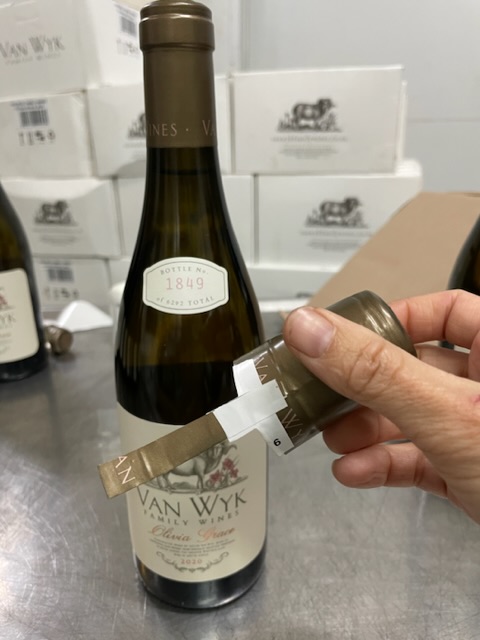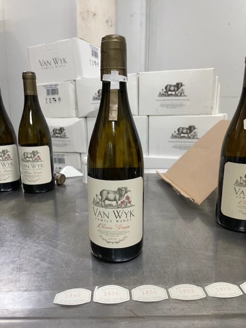 Als Nacken einer Flasche beschreibt man den Bereich des Übergangs des Flaschenbauchs zum Flaschenhals. Die VAN WYK FAMILY Weine haben ein zusätzliches Nackenetikett auf dem die Nummerierung der Flaschen festgehalten wird. Dieses Etikett muss von Hand aufgeklebt werden. Ich war am Montag froh um diese eher entspannte Aufgabe. Konnte ich im gekühlten Keller sitzen und war abgelenkt von meinem grummelnden Magen. Als dann kurz vor Mittag Martin und Stefan zu mir gestossen sind, gings dann natürlich wieder viel rascher. Stefan hebt die Flaschen aus den Boxen, ich etikettiere und Martin sortiert die etikettierten Flaschen wieder in die Boxen. Und so haben wir in dieser menschlichen Arbeitskette ganz rasch einige Flaschen nummeriert. Nach dem Mittag war ich froh heimgehen zu können und den heutigen Tag hab ich total ausgesetzt. Doch es geht mir jetzt wieder etwas besser. Justin war sogar so lieb und hat mir ein Medikament vorbeigebracht.