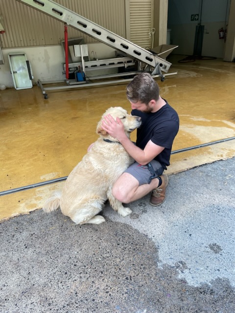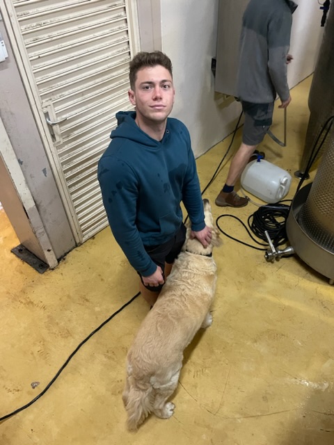 Etienne, der Farmer, der sich mit seiner Crew um die Reben kümmert, hat einen ganz besonders lieben Hund. Bolt heisst er. Er ist jetzt nicht unbedingt der schnellste Hund aber seine Liebenswürdigkeit schlägt ein wie der Blitz in jedes Herz und er mag es sehr, wenn er gekrault wird. Lustig auch wie lieb plötzlich Martin und Stefan schauen, wenn sie ganz verträumt den lieben Bolt hinterm Ohr kraulen.